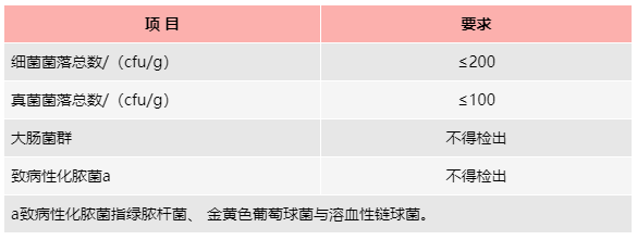 微生物要求如下表: