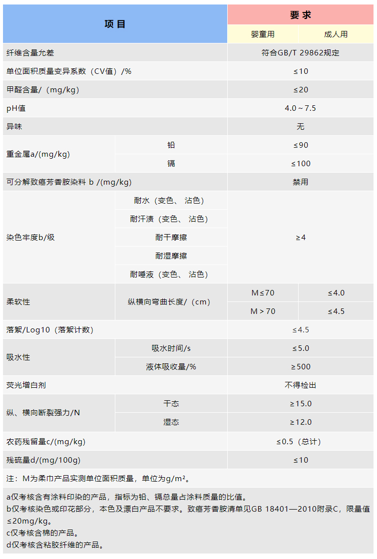 柔巾作為人體皮膚擦拭用產(chǎn)品,需對嬰童用與成人用產(chǎn)品進(jìn)行各項技術(shù)指標(biāo)考核,才能滿足消費(fèi)者的使用需求。