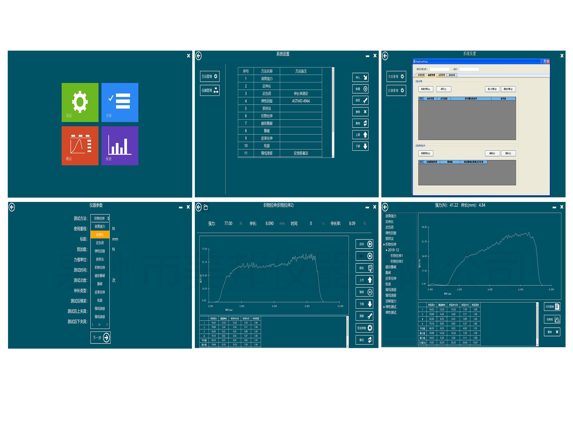 用于各種紡織品、非織造布、土工布、拉鏈、橡膠、鞋材、皮革、金屬、建材等材料的拉伸、撕破、頂破、剝離、定伸長、定負(fù)荷、彈性回復(fù)、縫線滑移、模量、單紗強(qiáng)力等力學(xué)性能分析測(cè)試。