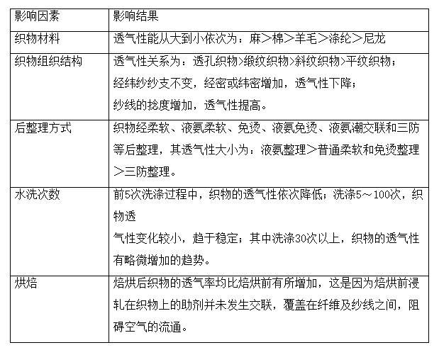 主題:關(guān)于織物透氣性能的討論